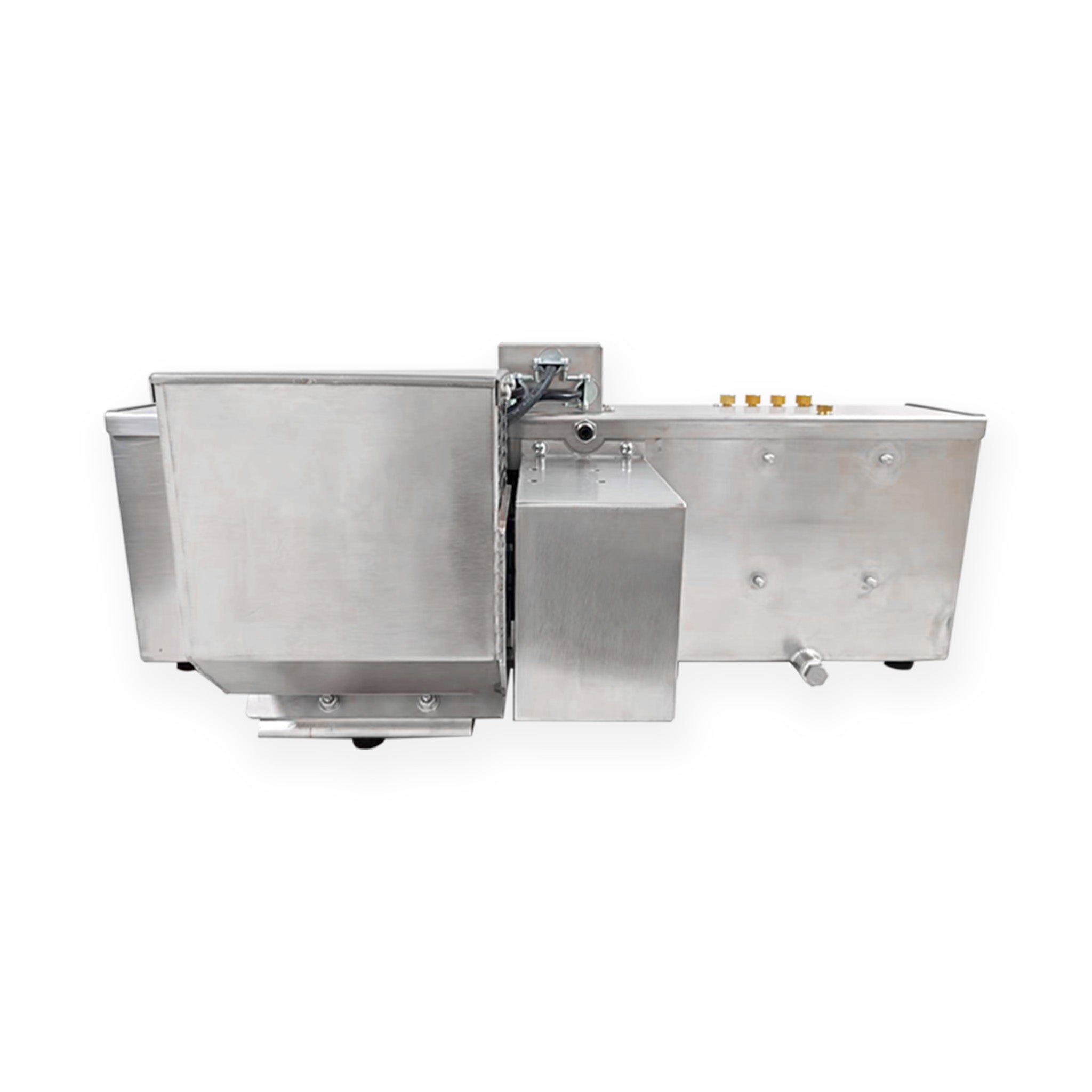 Water Delivery: The Highland Park CB6V Cabbing Machine has a drip feed water delivery system. The water feed fitting on the back of the unit accepts 6mm poly tubing and feeds both sets of valve assemblies that are located under the top of the unit. The valves are positions over each wheel and the felt wipers assist in the dispersion of the water across the face of each wheel. The valves have removable needles that can easily be removed for cleaning or for servicing the seals.
