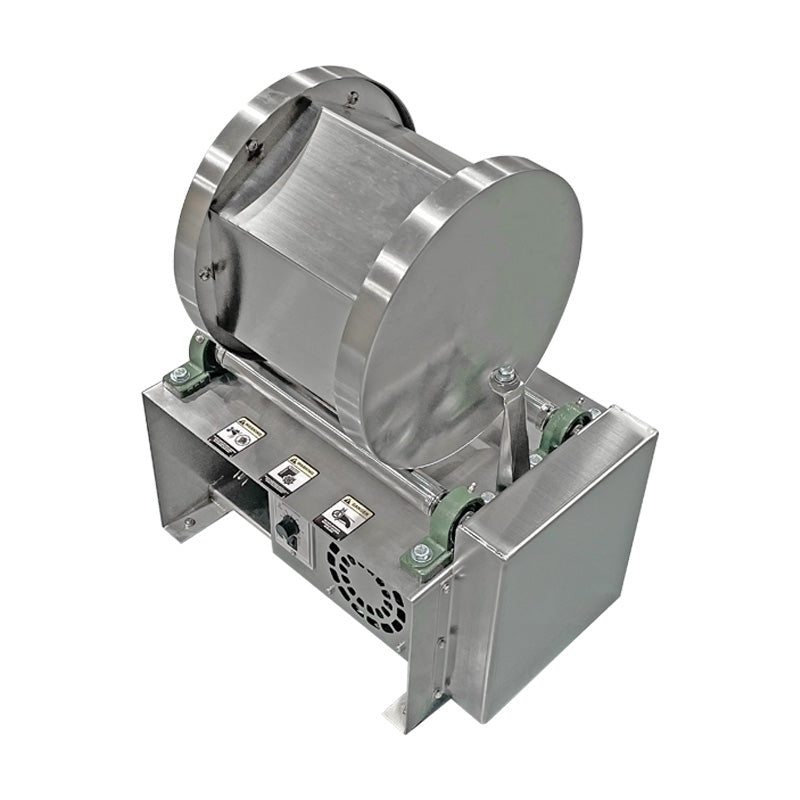 The Highland Park Big Barrel Rotary Rock Tumblers are designed for power and process efficiency and long life. While most Rotary Tumblers are made using standard Nema type AC motors we have seen huge advantages to using Brushless DC motors where the electrical power consumption is often less than half of conventional AC motors. Since Rotary Tumblers are often running weeks at the time this can be a substantial savings for the Tumbler owner.  Our Big Barrel Rotary Tumblers are ideal for tumble polishing large batches of stone, or to do burnishing, deburring or other processes on metal components.