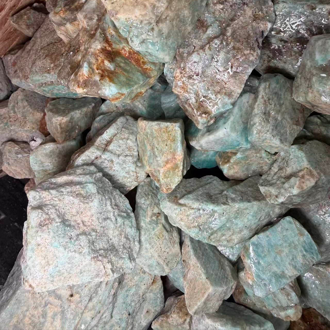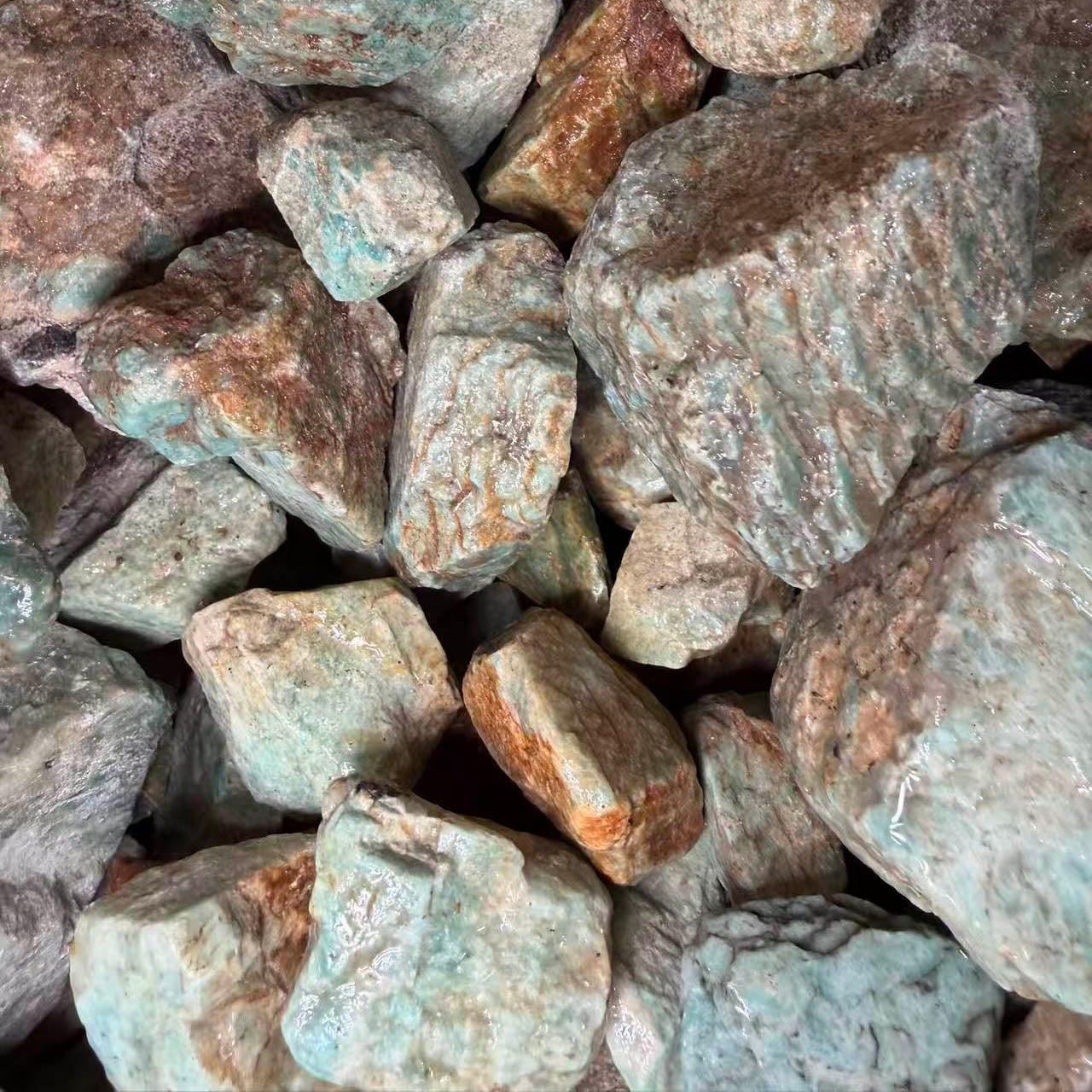 Amazonite rough is a green to blue-green feldspar with natural striations. This amazonite stone is ideal for cabbing, tumbling, slab cutting, and decorative carvings. With a Mohs hardness of 6–6.5, it polishes well, producing vibrant stones suitable for jewelry, lapidary projects, and collector displays.