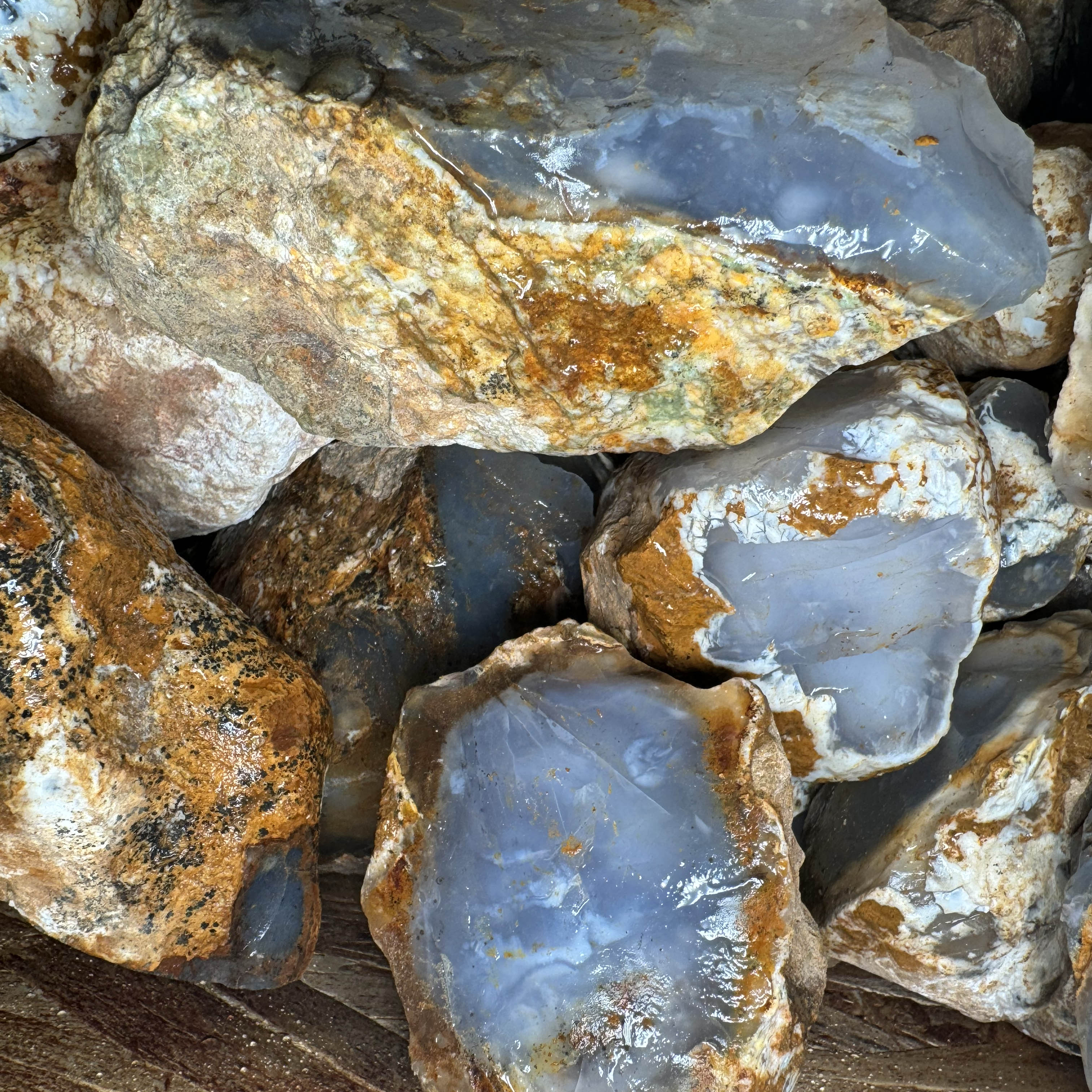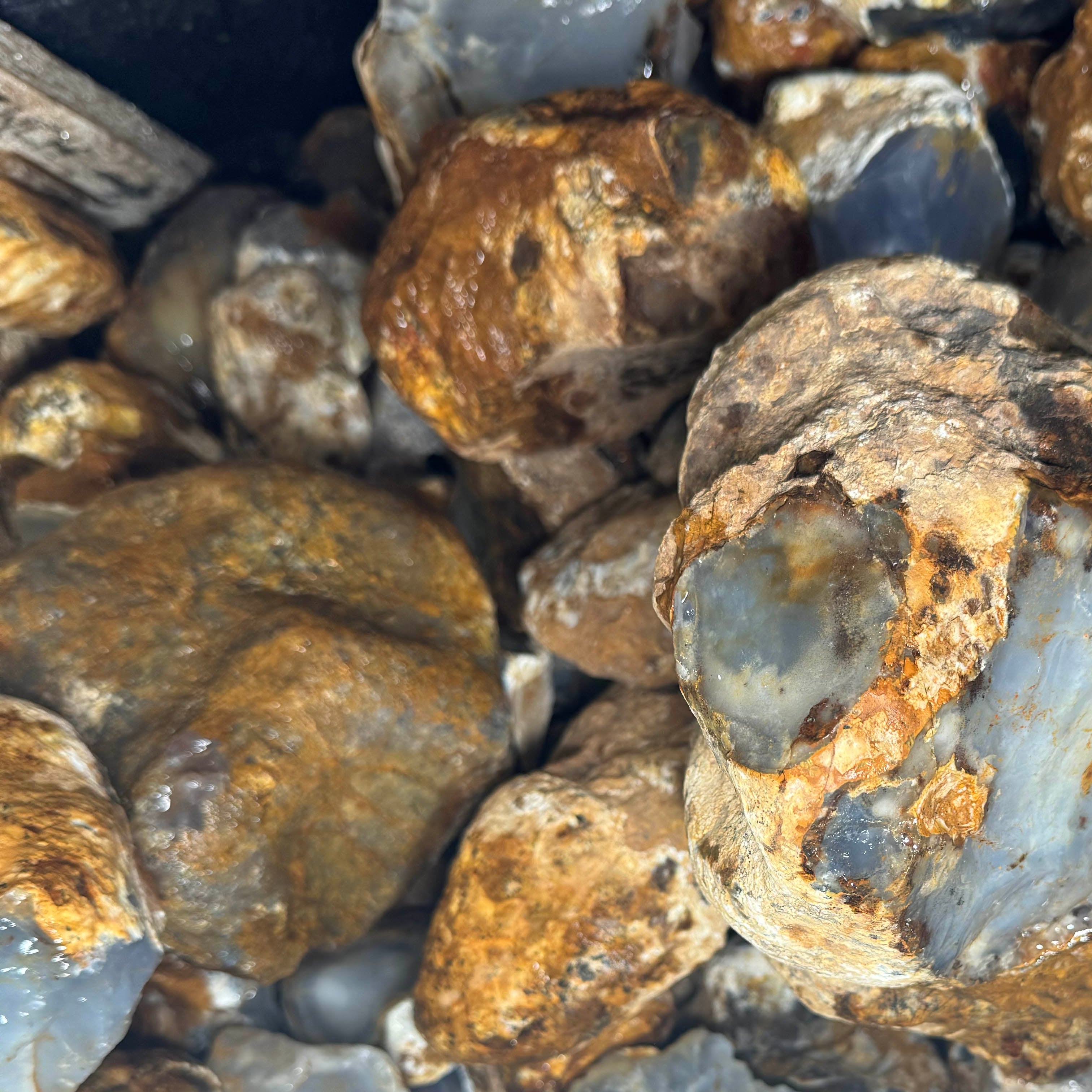 DISCLAIMER: These are rough, uncut stones. They must be cut and polished to create cabochons, carvings, or specimens. Photos show examples of cut pieces for reference only. We work to provide the best quality rough, and every piece is different when it is cut, which provides an exciting opportunity in the cutting process. We are committed to your satisfaction, so if you don’t like the material you receive, you may return it for a refund before cutting.