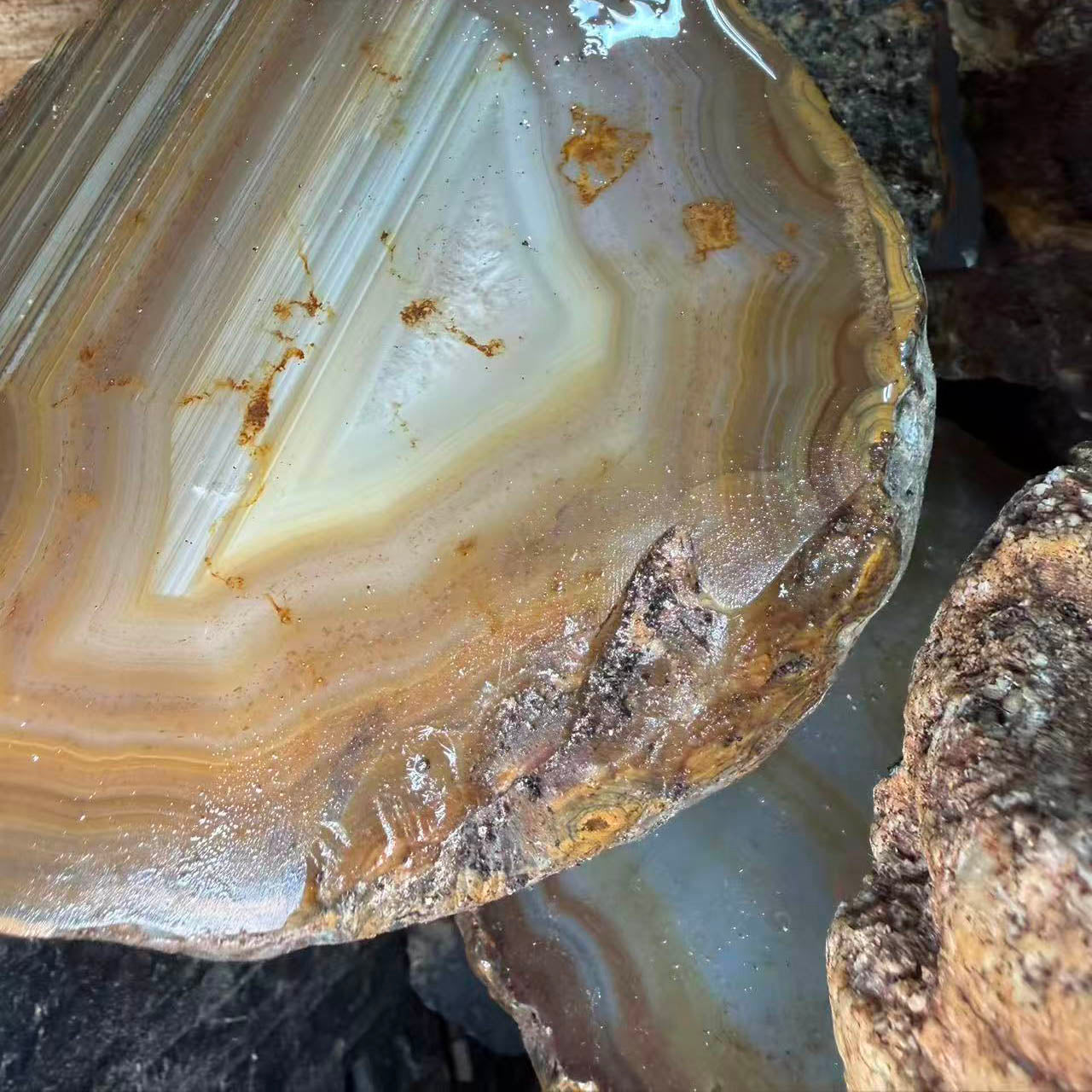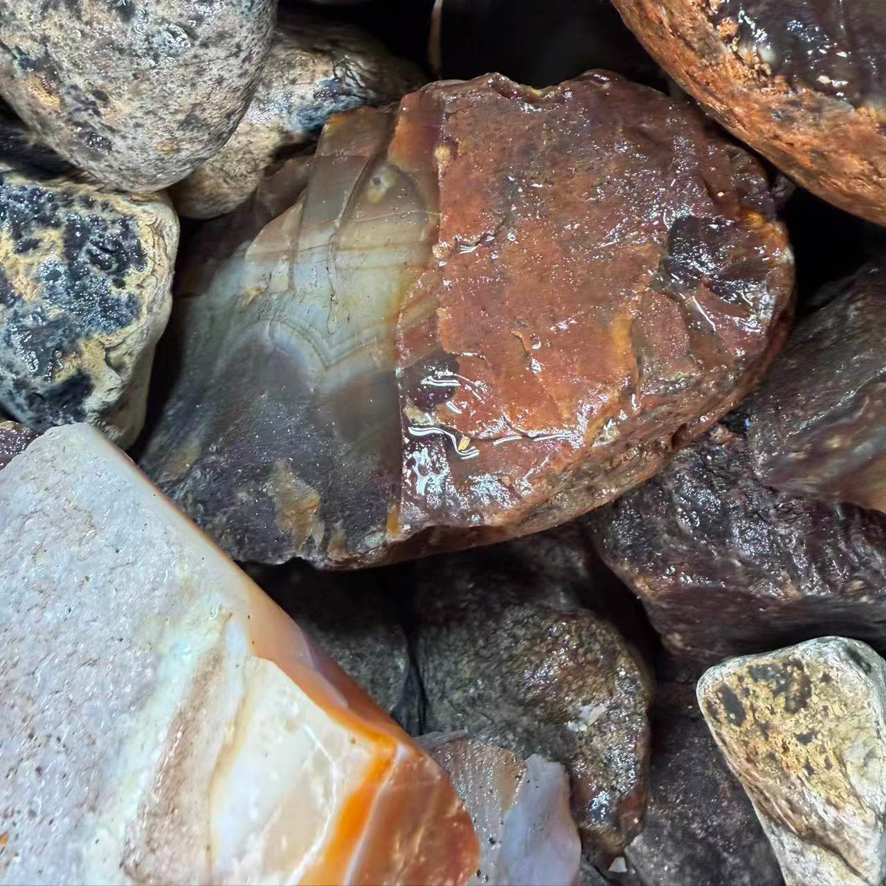 Brazilian Agate is a banded chalcedony with earthy and vivid tones, ideal for cabbing, tumbling, slab cutting, and small carvings. It has a Mohs hardness of 6.5–7, allowing lapidary artists to produce polished stones that highlight natural patterns for jewelry and display.