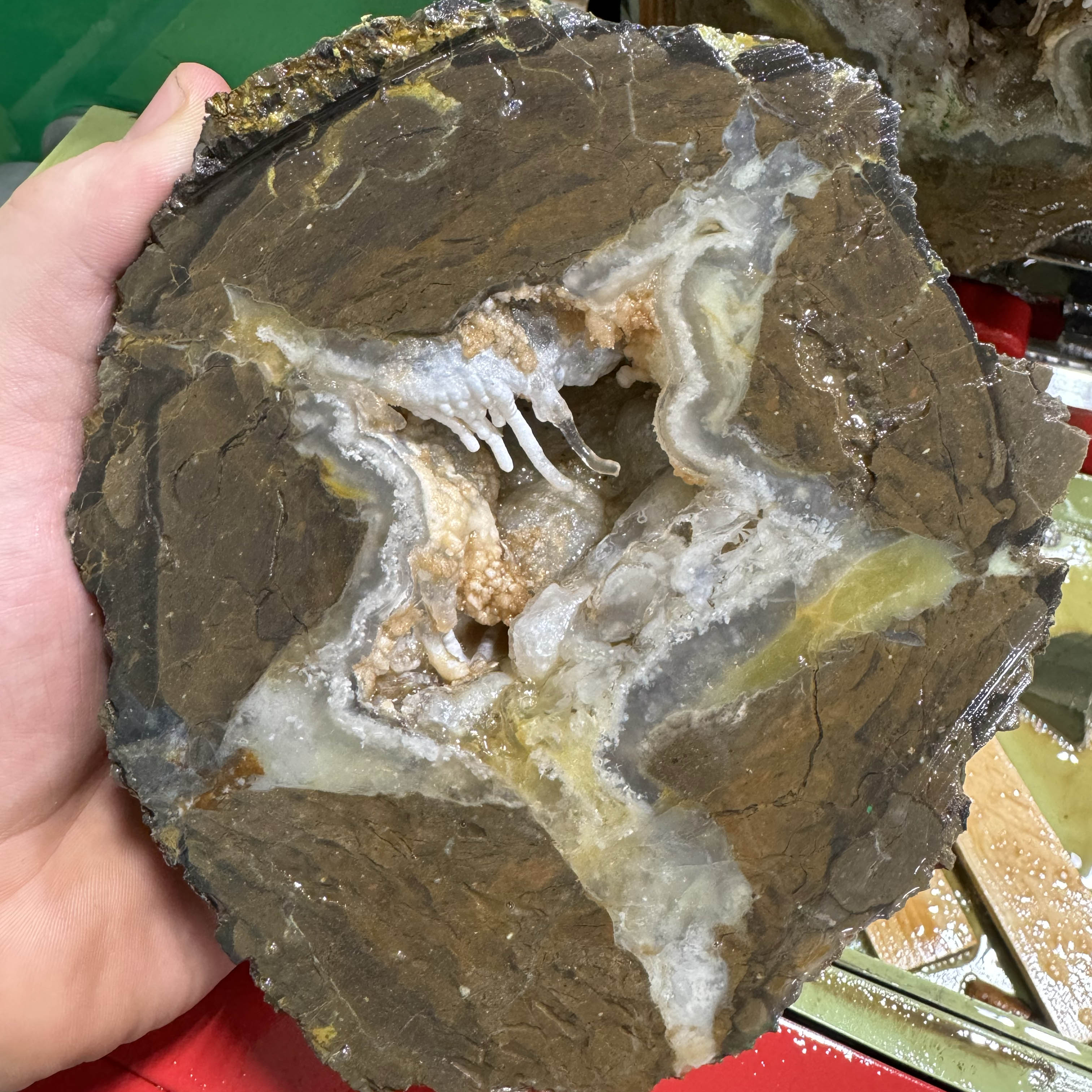 Canyon Rim Thunderegg showcases geode-like interiors within hardened volcanic rock. Also known plainly as Thundereggs, they are ideal for slabbing, cabbing, and display pieces. With a Mohs hardness around 6.5, they reveal unique internal patterns when polished, making them highly sought-after by collectors and lapidary artists. having fun.