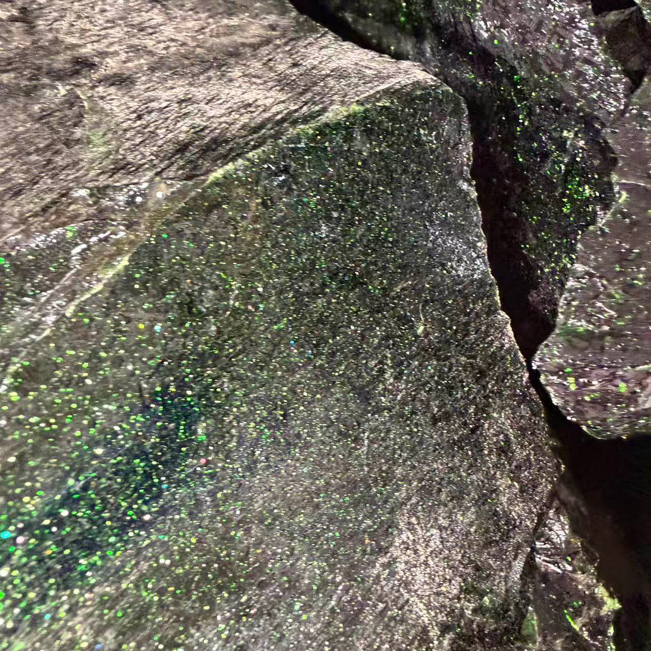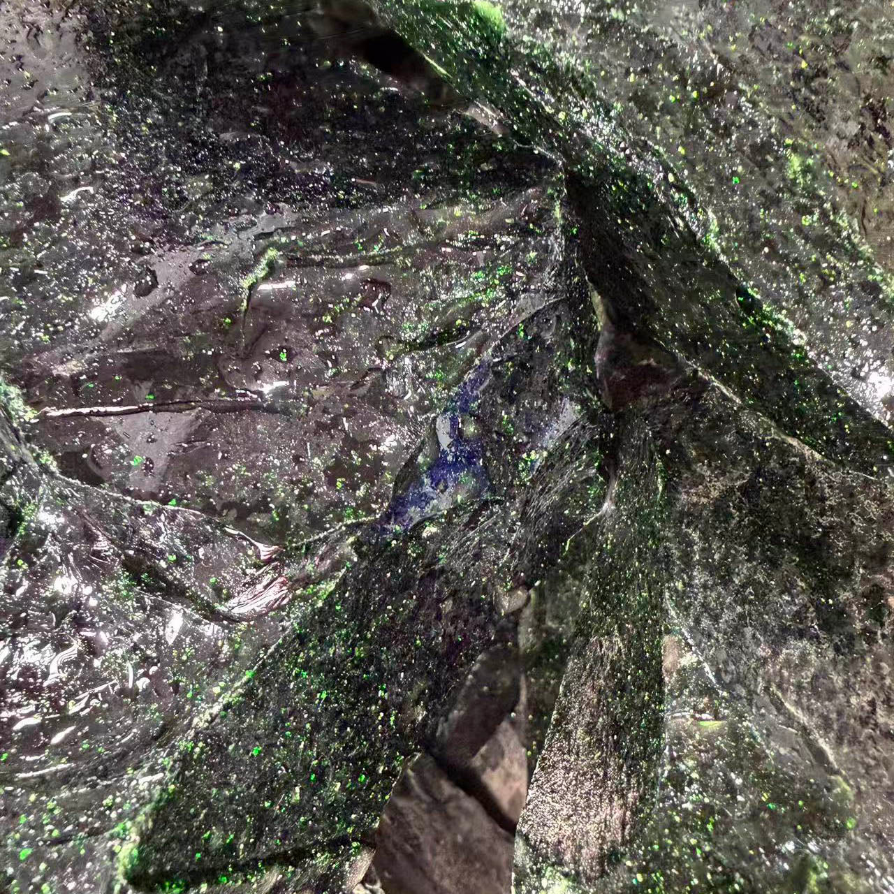 Green Goldstone is a sparkling man-made glass, perfect for cabochons, beads, pendants, and other lapidary projects. Its glitter comes from tiny metallic inclusions suspended in the green glass, giving each piece a unique shimmer. It can also be polished into decorative items or carved for display.