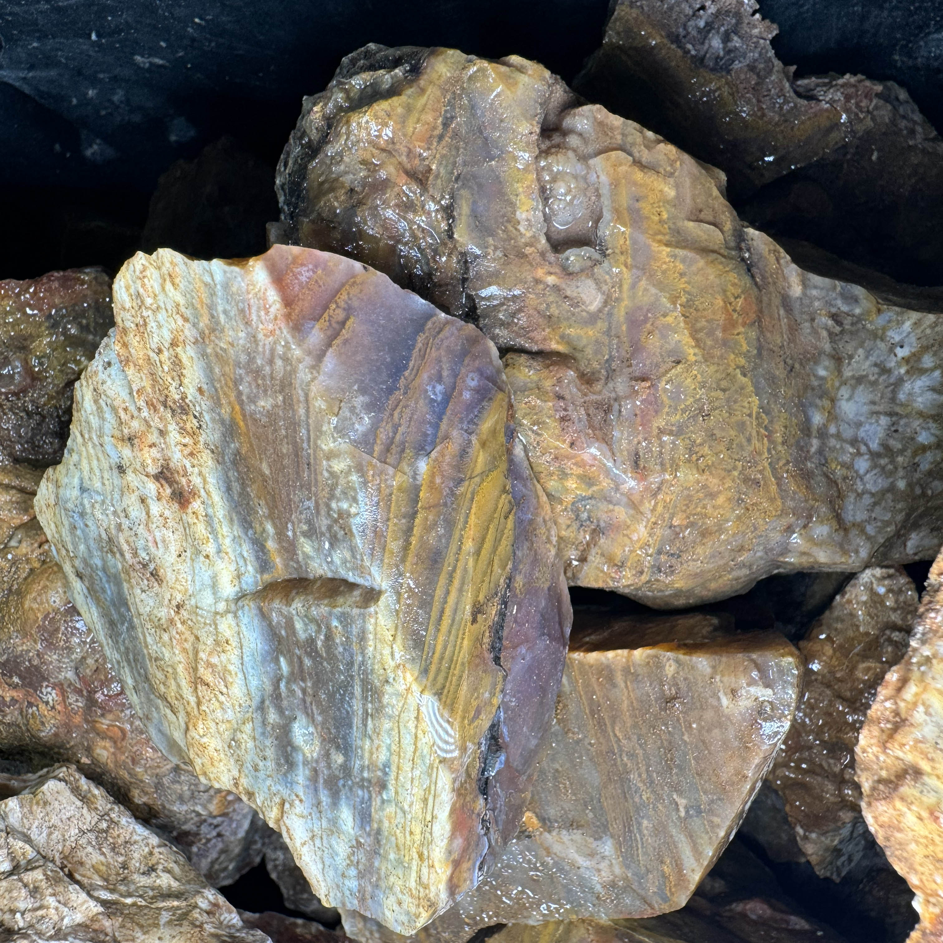 DISCLAIMER: These are rough, uncut stones. They must be cut and polished to create cabochons, carvings, or specimens. Photos show examples of cut pieces for reference only. We work to provide the best quality rough, and every piece is different when it is cut, which provides an exciting opportunity in the cutting process. We are committed to your satisfaction, so if you don’t like the material you receive, you may return it for a refund before cutting.