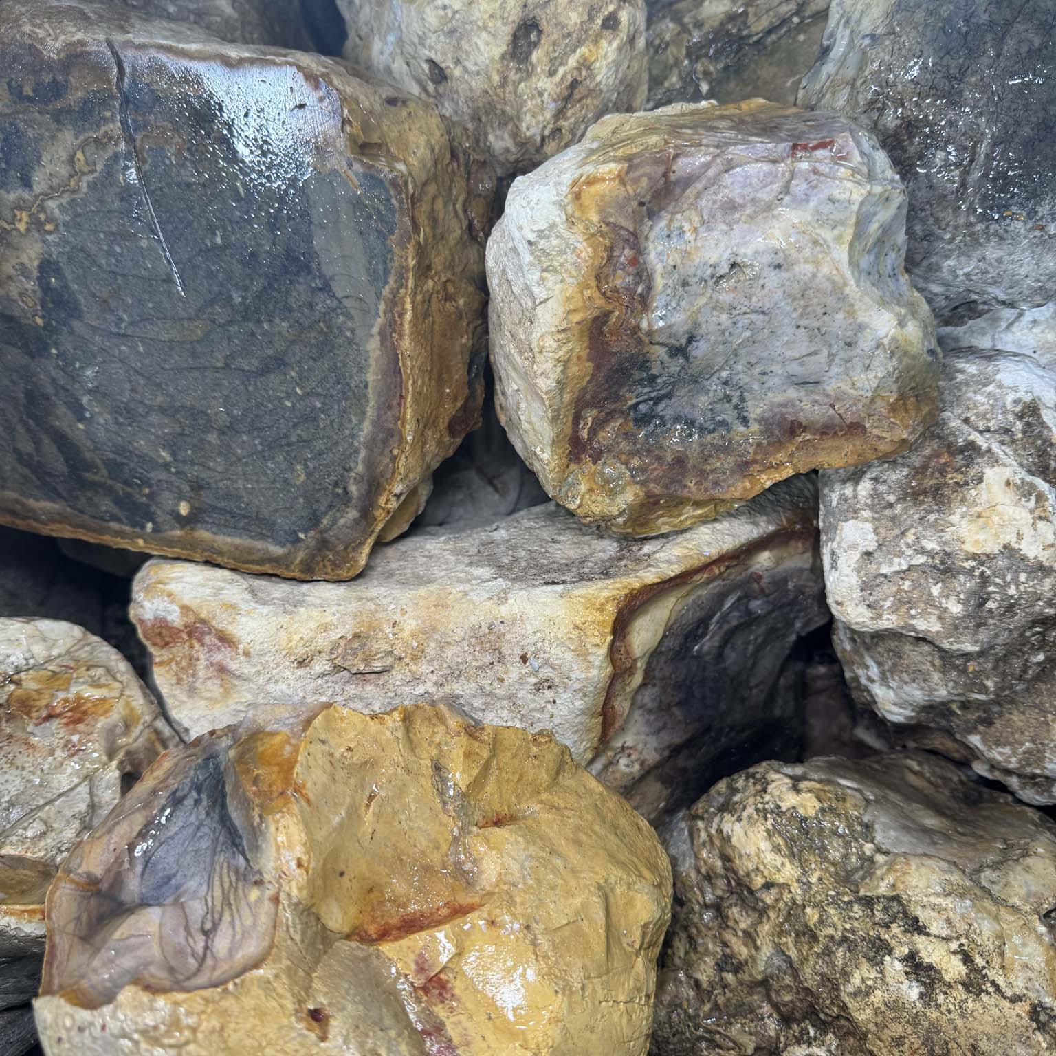 DISCLAIMER: These are rough, uncut stones. They must be cut and polished to create cabochons, carvings, or specimens. Photos show examples of cut pieces for reference only. We work to provide the best quality rough, and every piece is different when its cut which provides an exciting opportunity in the cutting process. We are committed to your satisfaction, so if you don’t like the material you receive, you may return it for a refund before cutting.