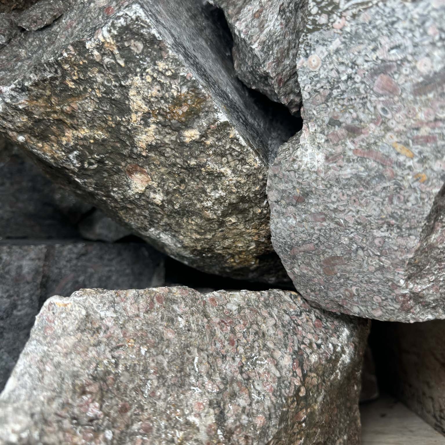 Pink Crinoid Stone contains fossilized crinoid segments in soft pink tones. Each piece is unique, showing natural fossil patterns ideal for collectors, hobbyists, and lapidary artists. These rough stones can be polished or shaped into cabochons, carvings, or display pieces that showcase the ancient marine structures.