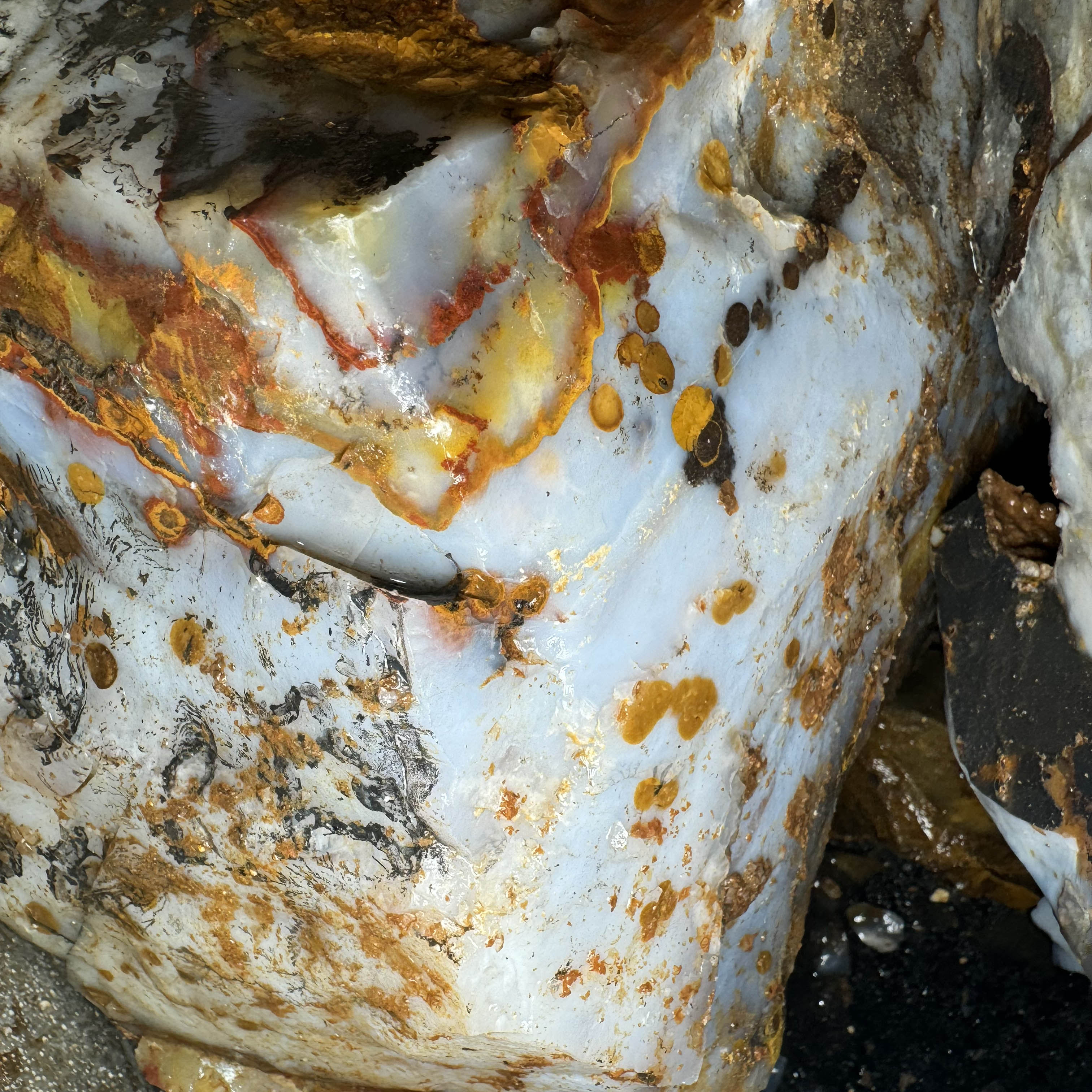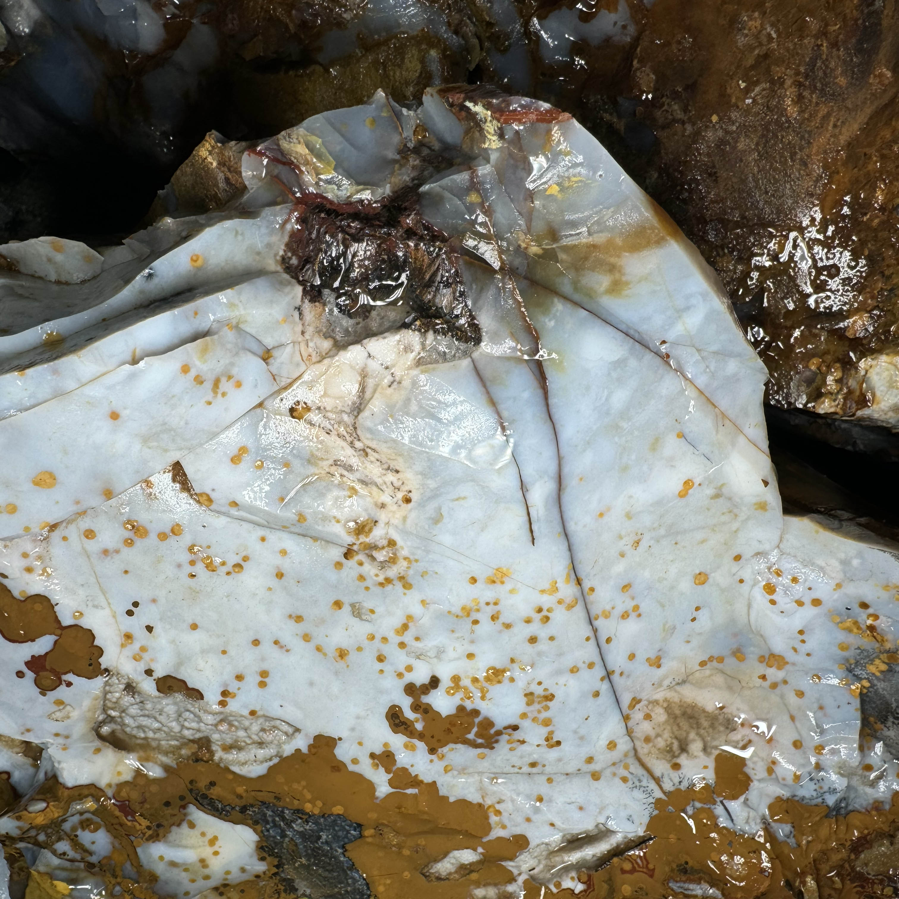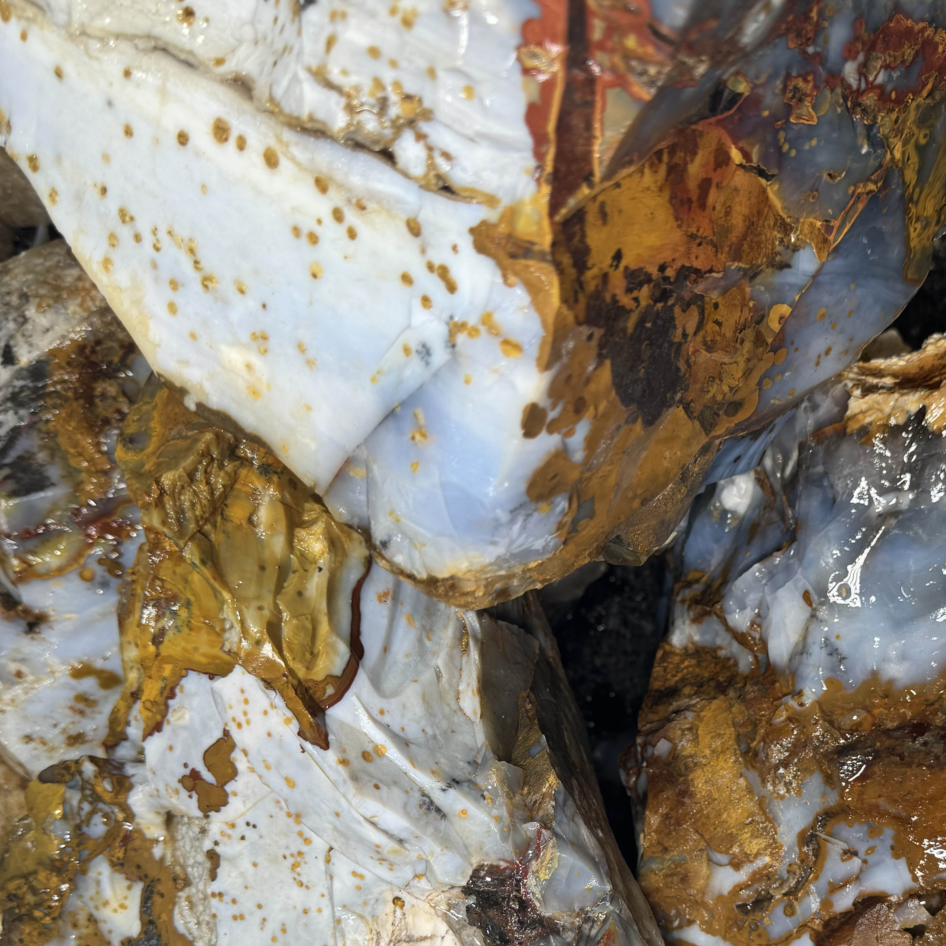 Blue Polka Dot Agate features sky-blue chalcedony dotted with contrasting white spots. This stone is perfect for cabbing, tumbling, slab cutting, and small carvings. With a Mohs hardness of 6.5–7, it polishes beautifully, allowing lapidary artists to highlight its playful polka dot patterns in jewelry and display pieces. having fun.