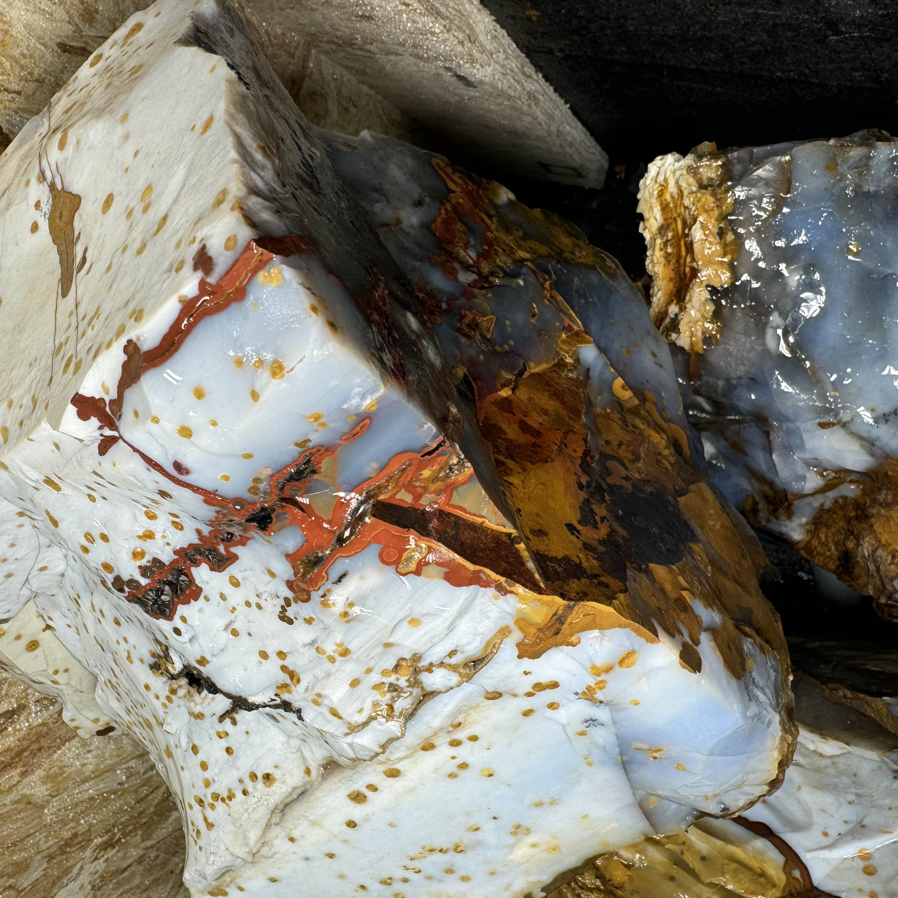 DISCLAIMER: These are rough, uncut stones. They must be cut and polished to create cabochons, carvings, or specimens. Photos show examples of cut pieces for reference only. We work to provide the best quality rough, and every piece is different when it is cut, which provides an exciting opportunity in the cutting process. We are committed to your satisfaction, so if you don’t like the material you receive, you may return it for a refund before cutting.