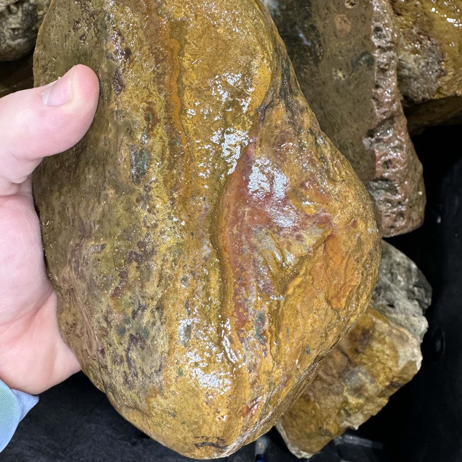 DISCLAIMER: These are rough, uncut stones. They must be cut and polished to create cabochons, carvings, or specimens. Photos show examples of cut pieces for reference only. We work to provide the best quality rough, and every piece is different when its cut which provides an exciting opportunity in the cutting process. We are committed to your satisfaction, so if you don’t like the material you receive, you may return it for a refund before cutting.